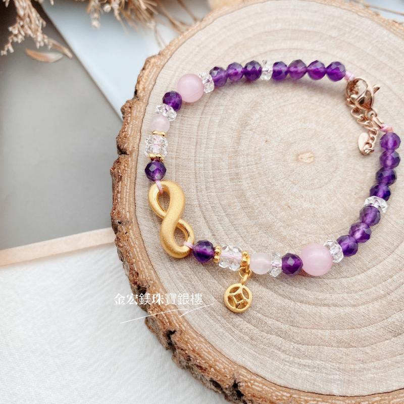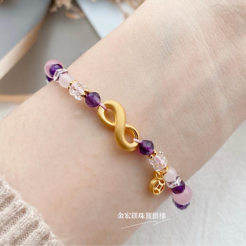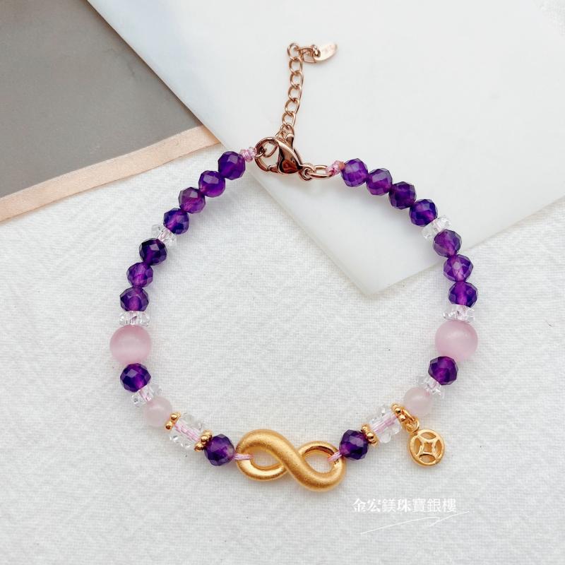 首頁 黃金 手鍊/手環 純黃金 9999錢無限-寶石手鍊(紫)