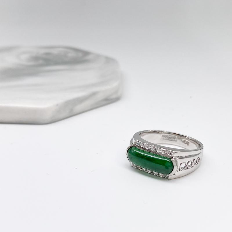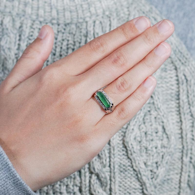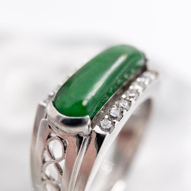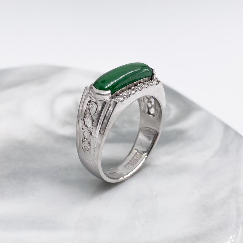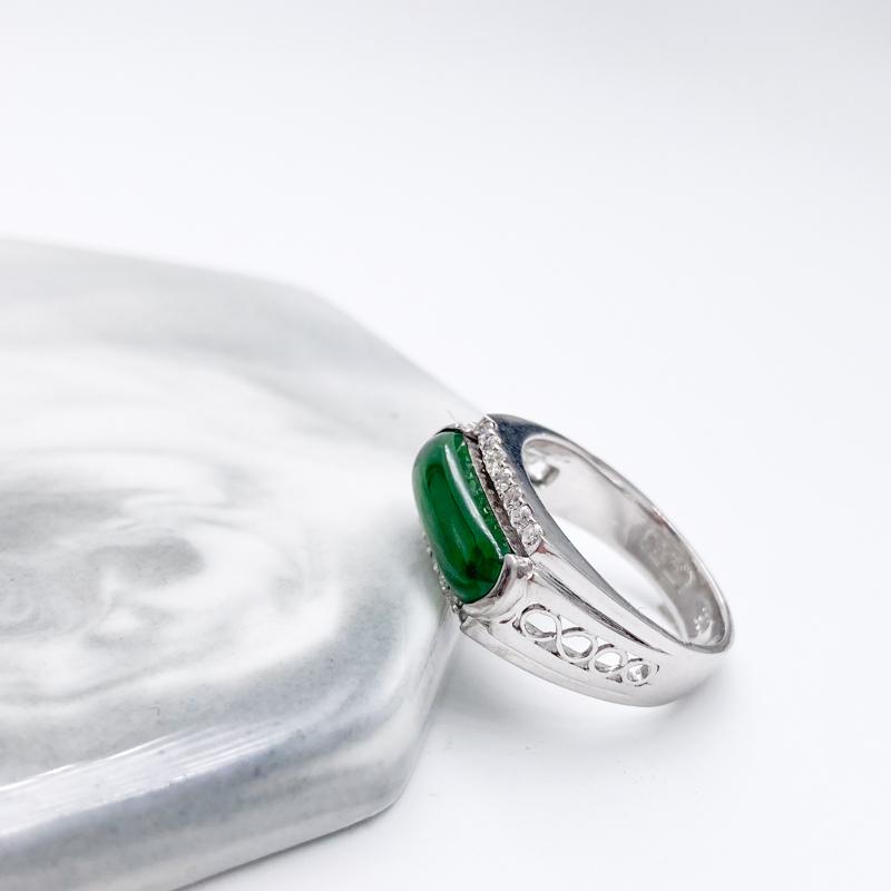 【商品名稱】翡翠玉邊鑲鑽白金戒