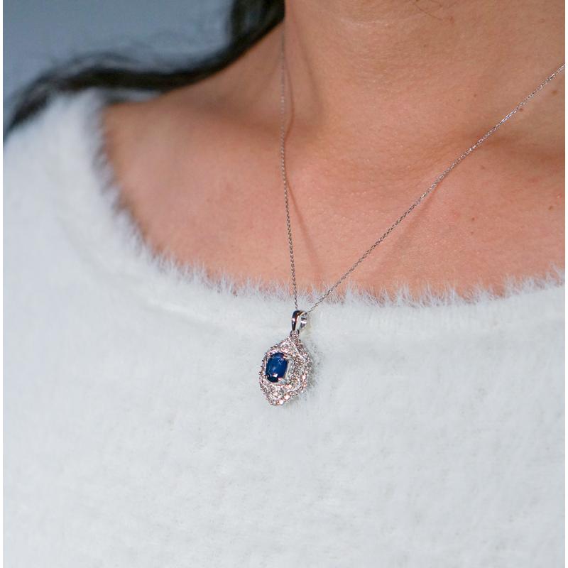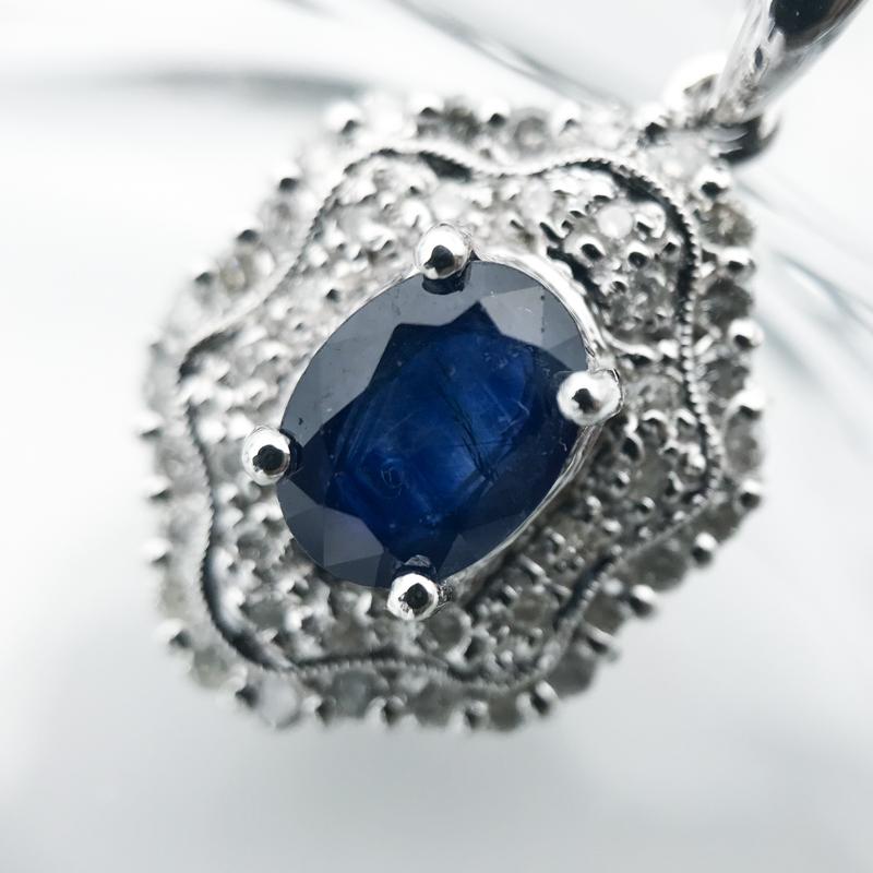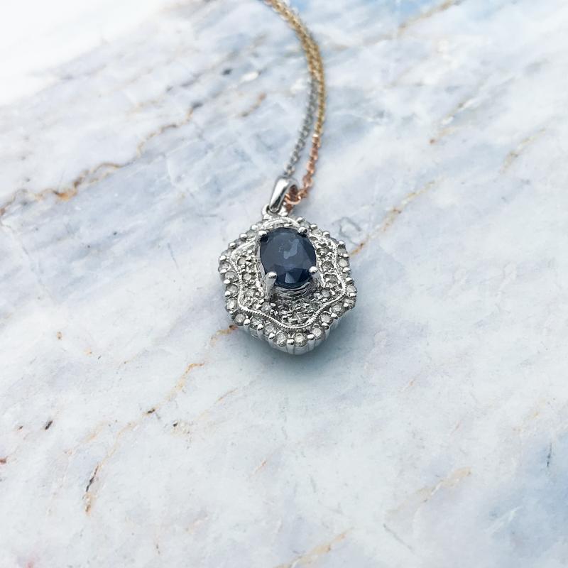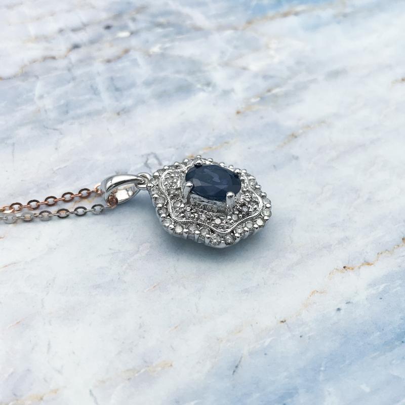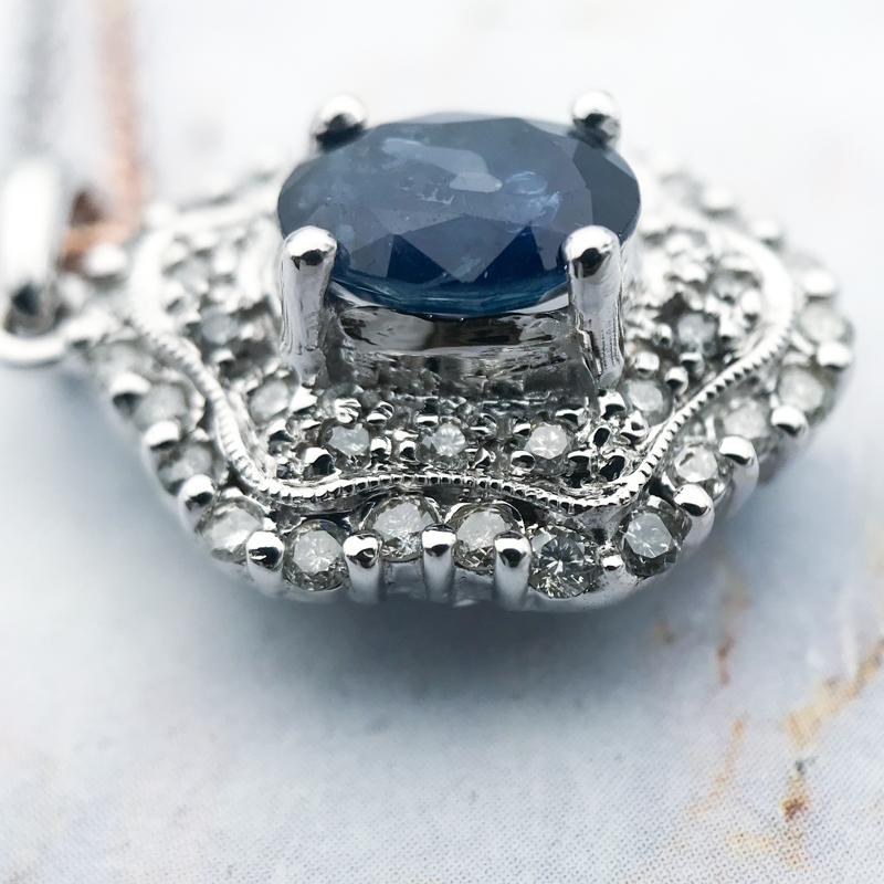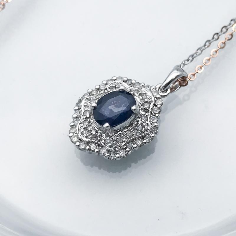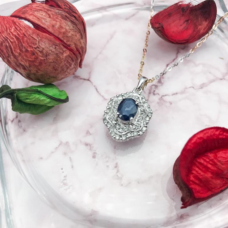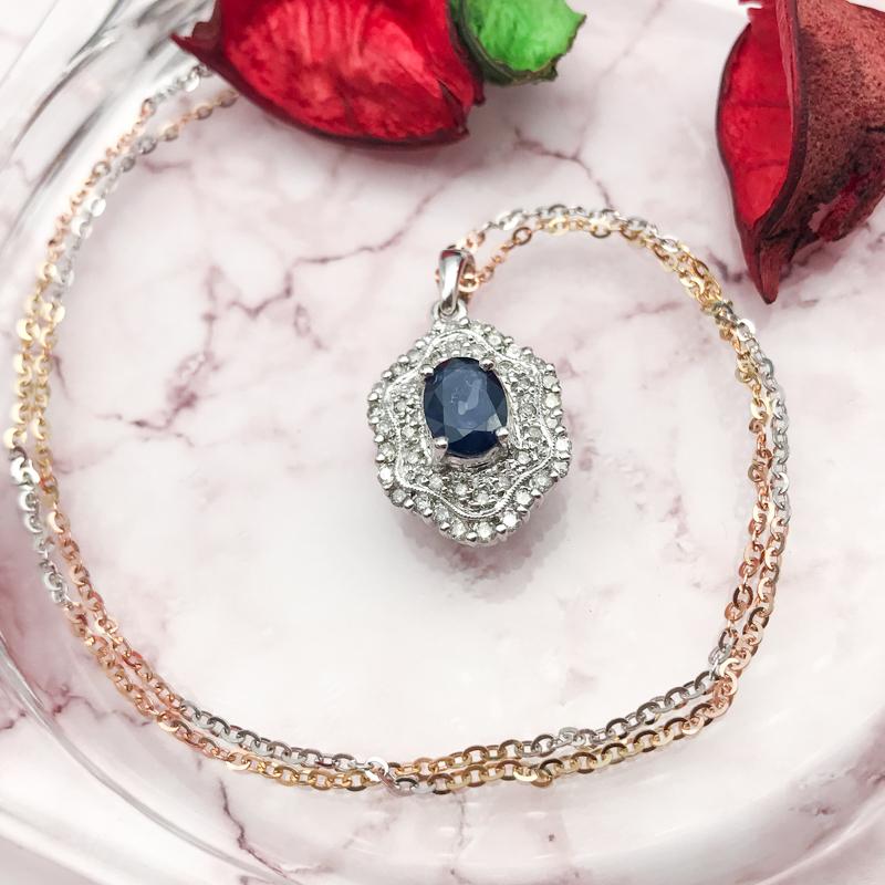【商品名稱】藍寶石花邊圓鑽K金墜飾