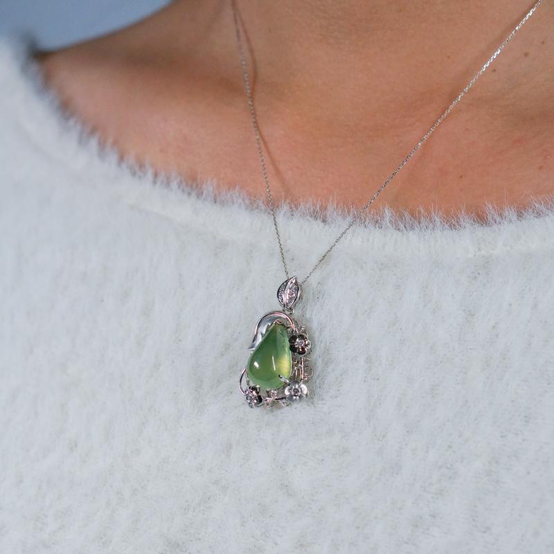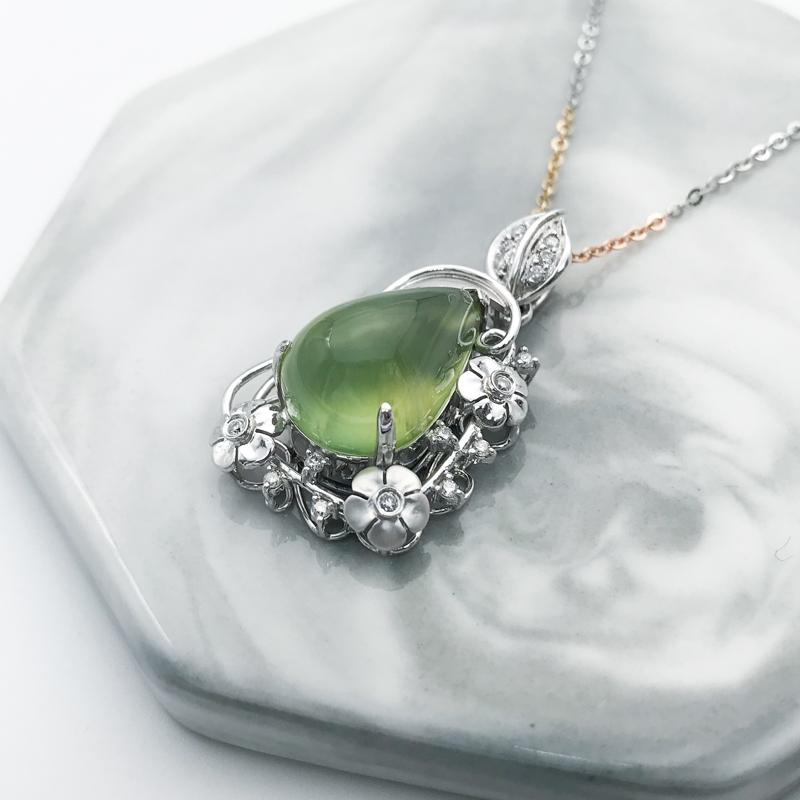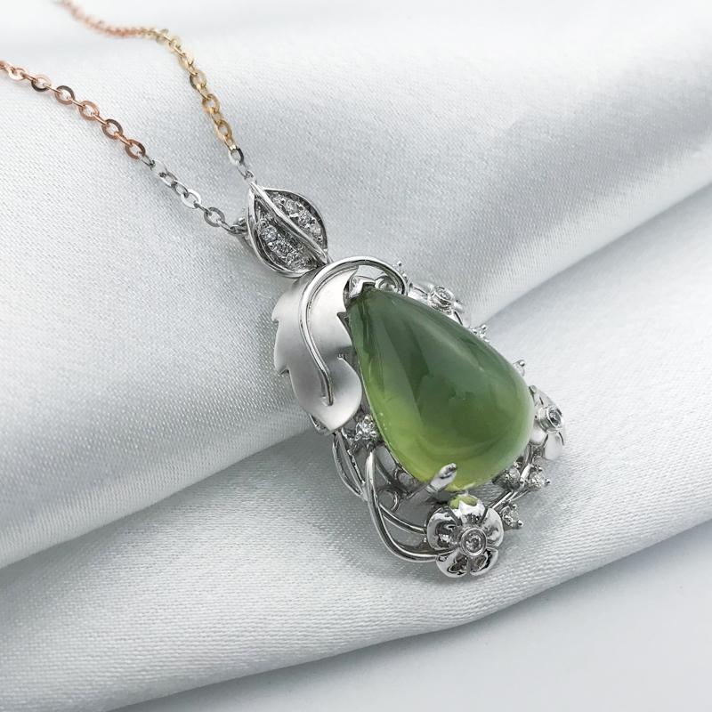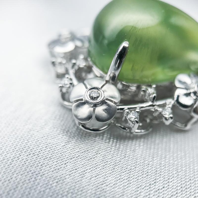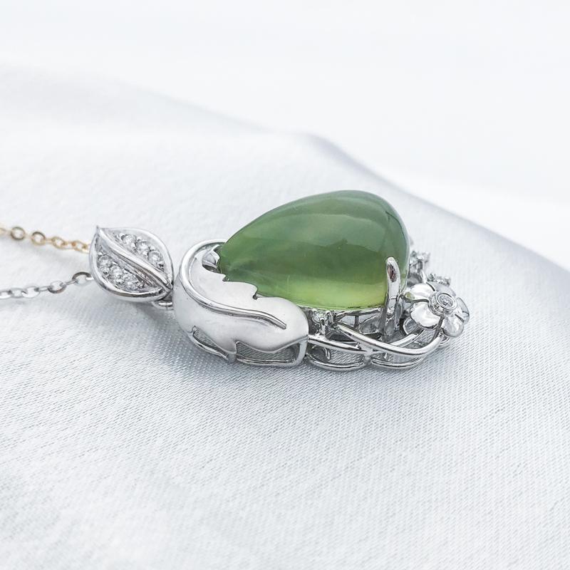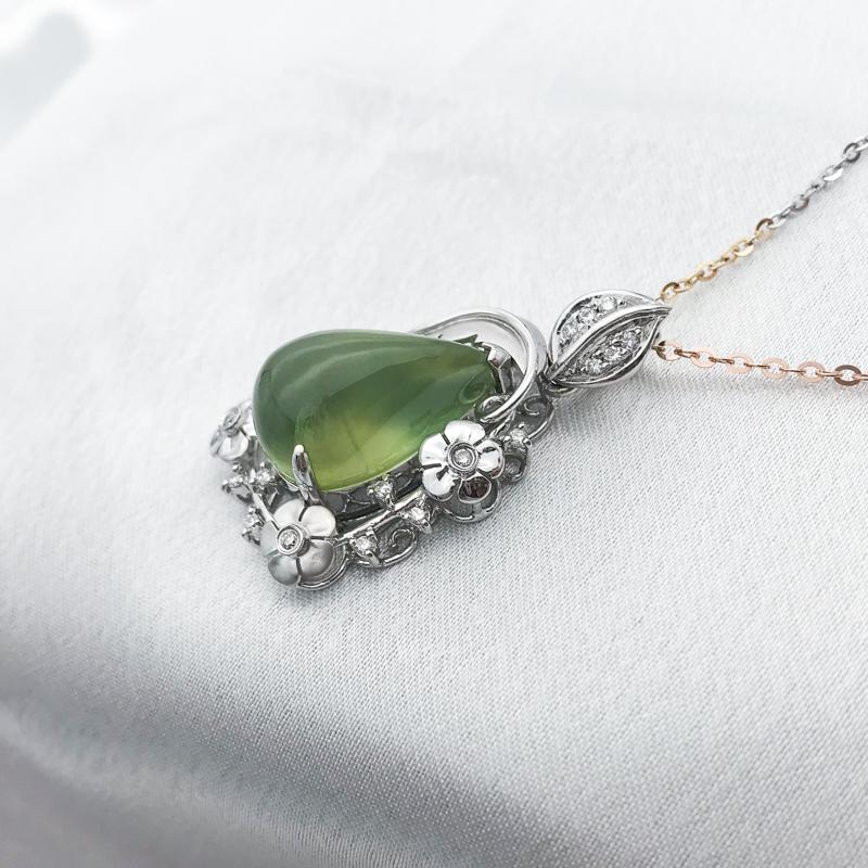 【商品名稱】葡萄石花草鑲鑽K金墜飾