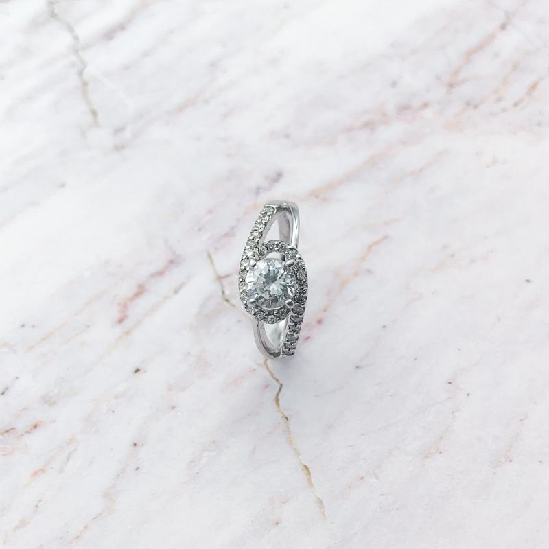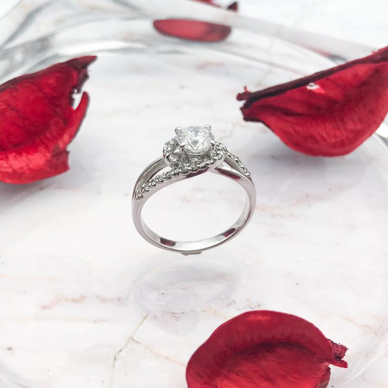【商品名稱】雙邊旋心鑲鑽K金戒
