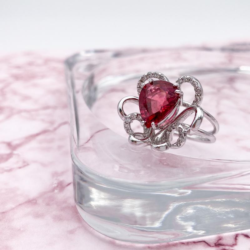 【鑲嵌材質】紅碧璽、天然鑽石