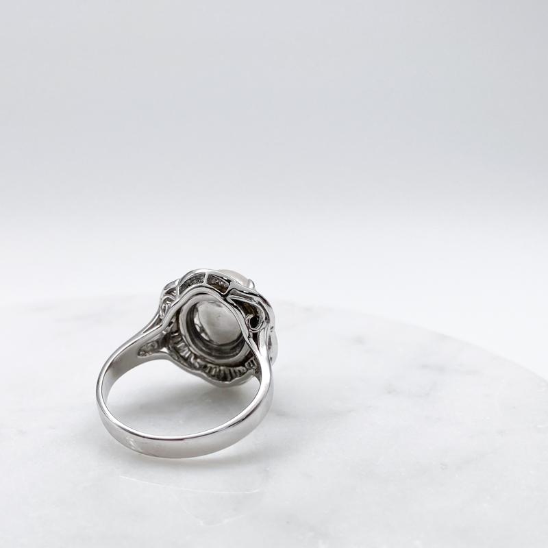 • 【商品名稱】月光石花邊鑲鑽K金戒