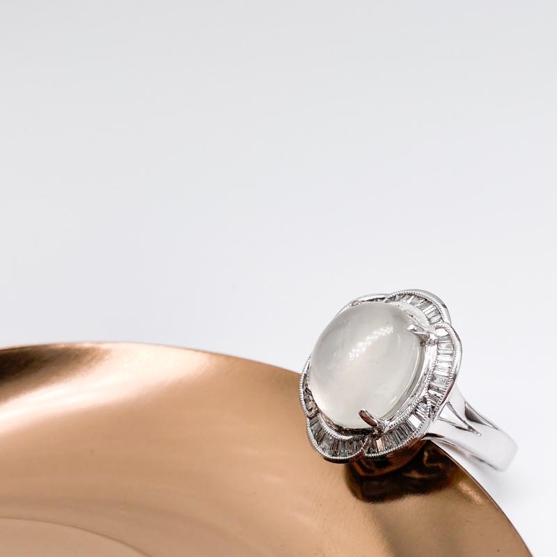 首頁 K金 戒指 鑲嵌 月光石花邊鑲鑽K金戒
