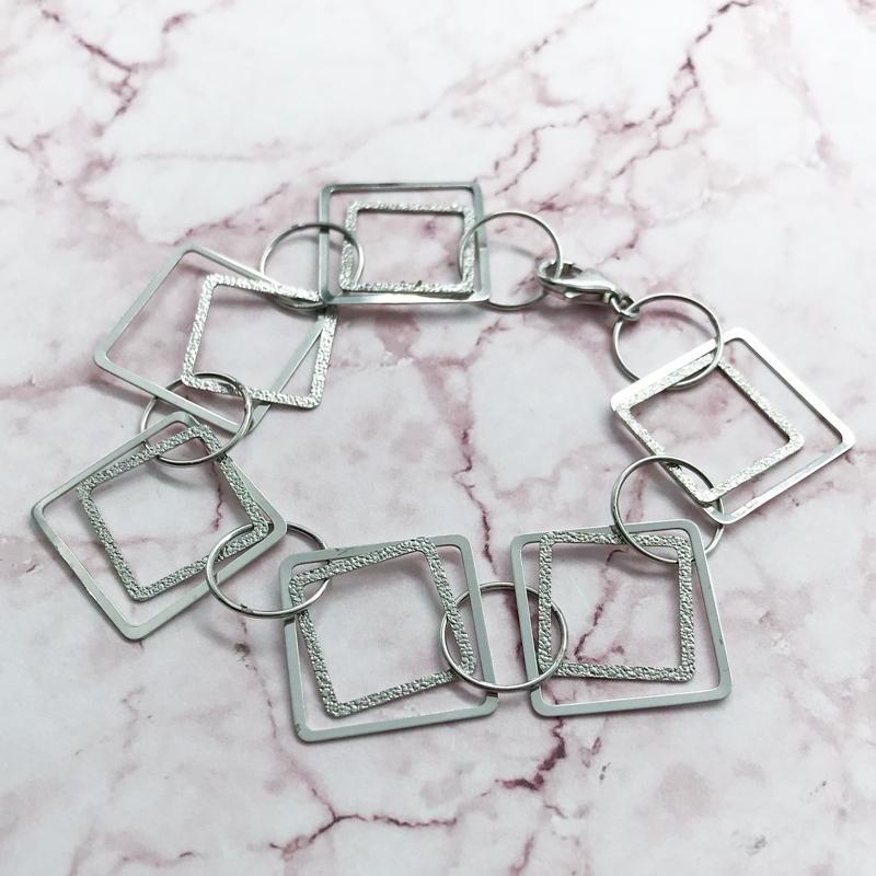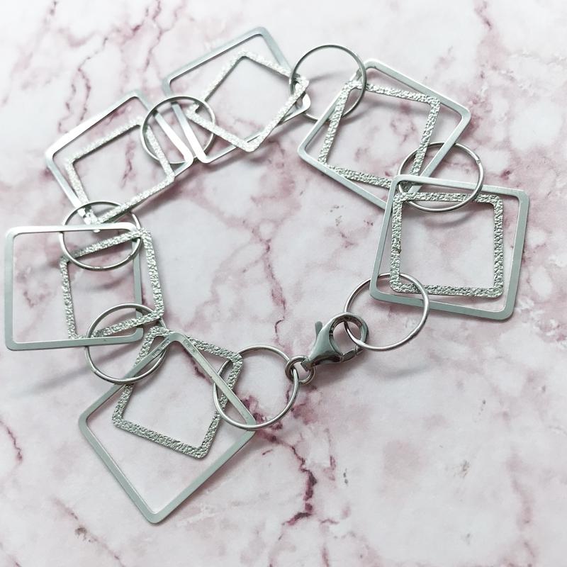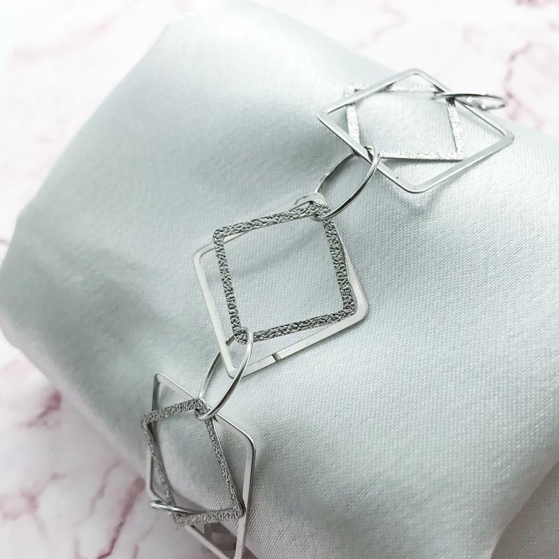 【商品名稱】白k金菱形幾何手鍊