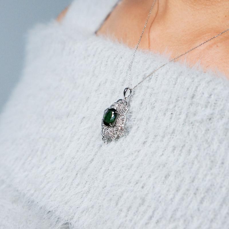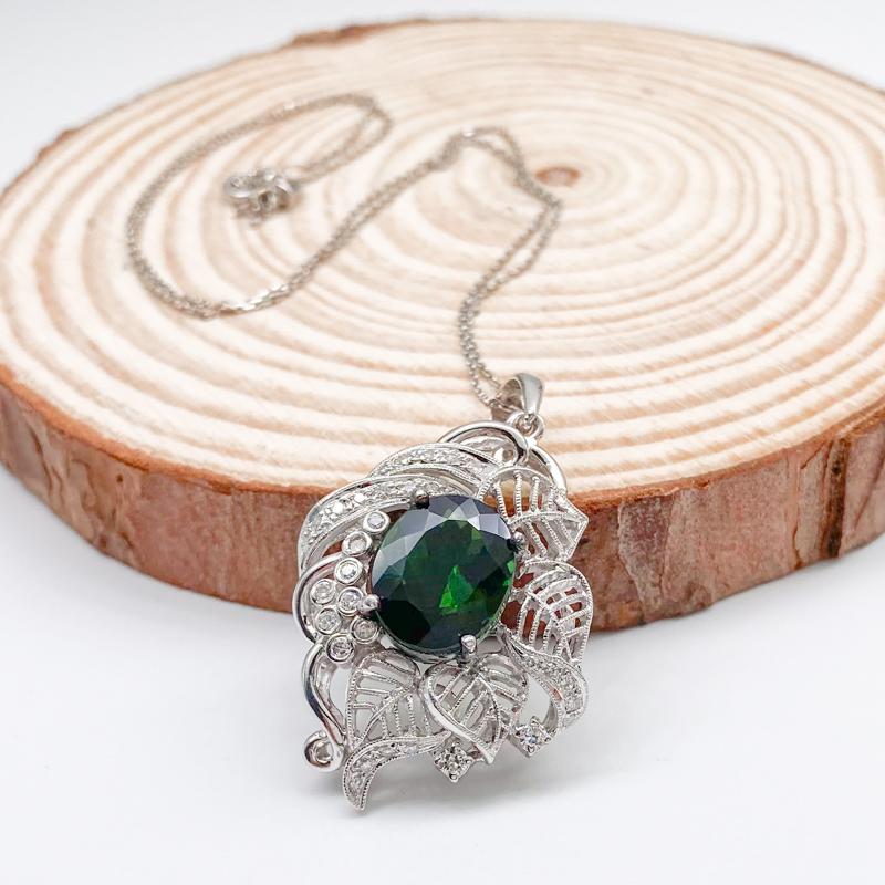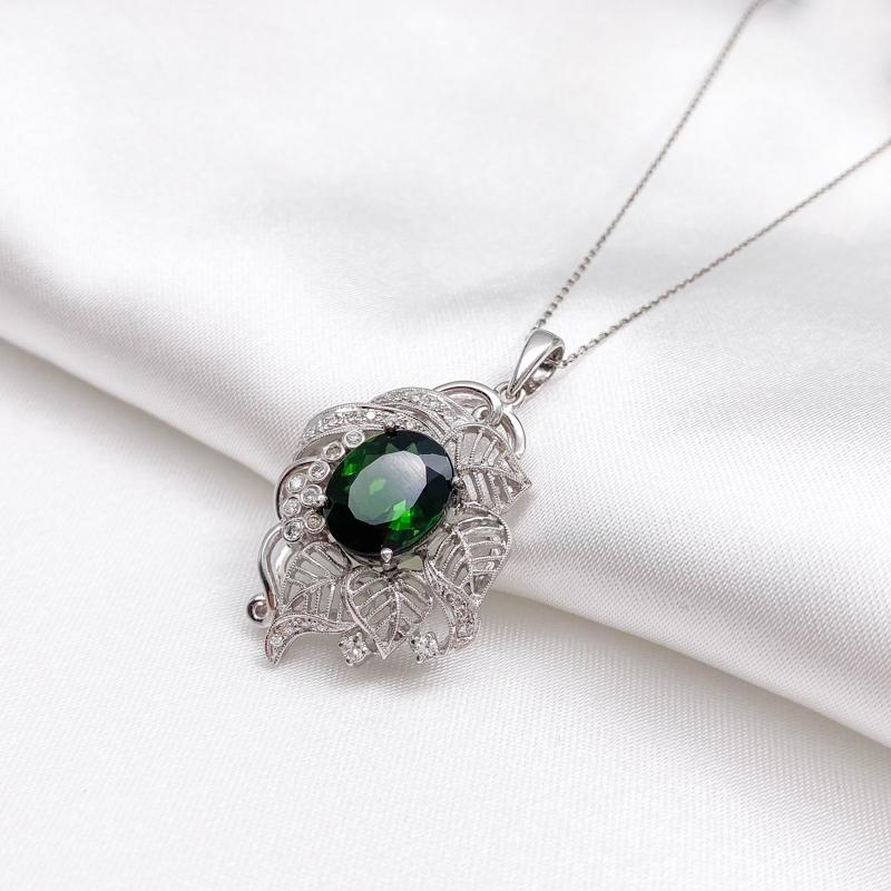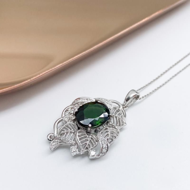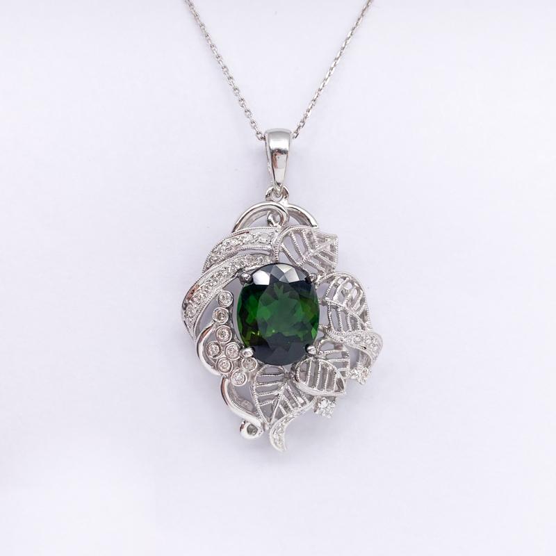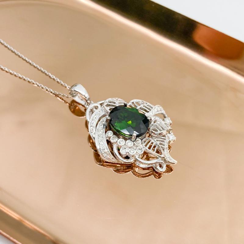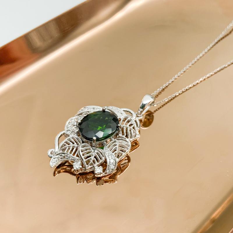 【商品名稱】綠葉碧璽鑲鑽K金墜飾