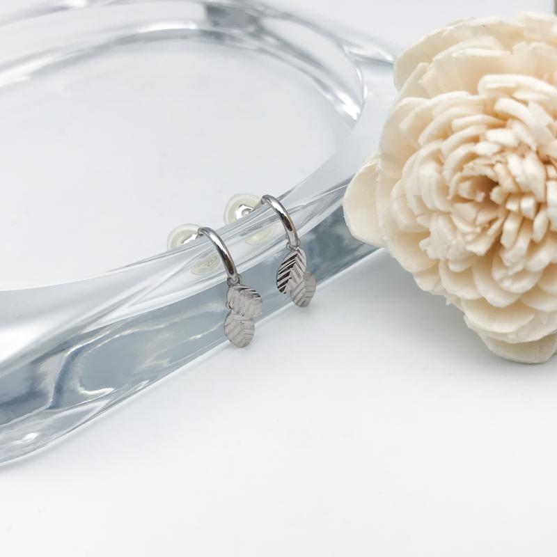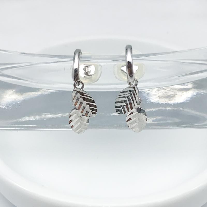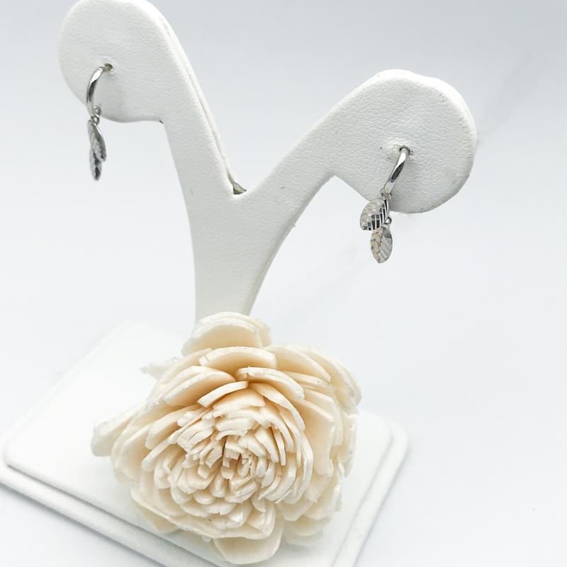 【商品名稱】羽葉白K金耳環