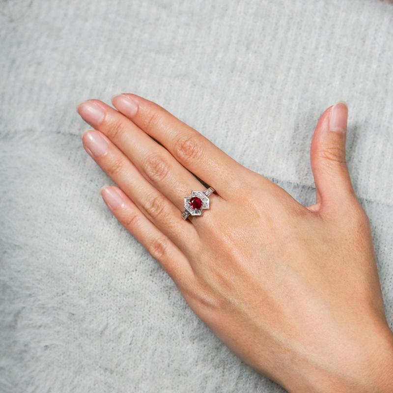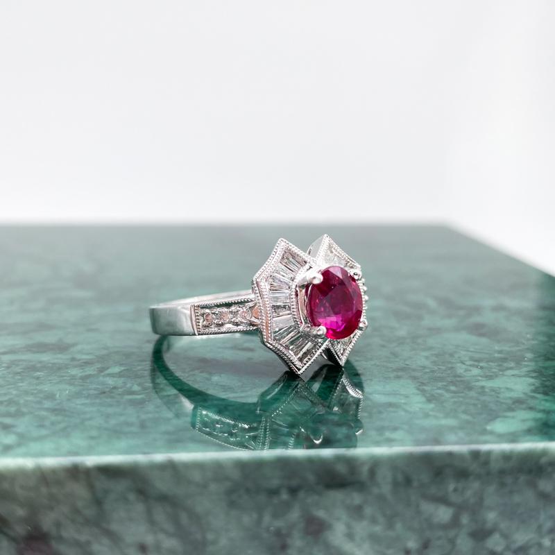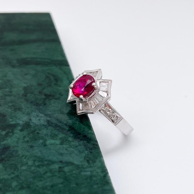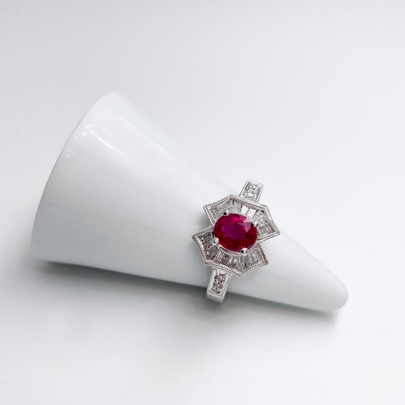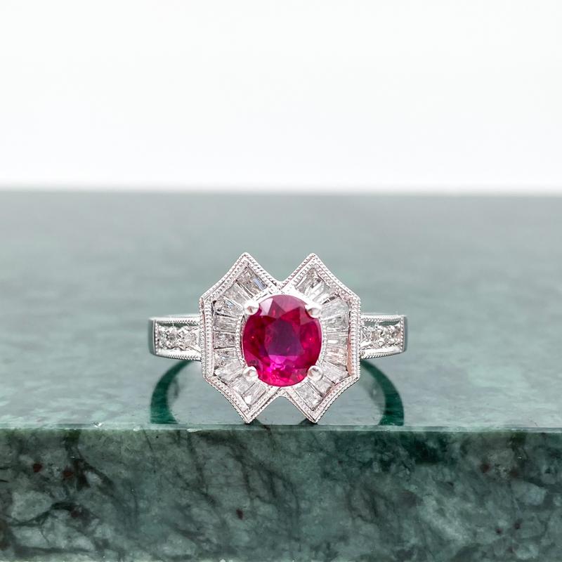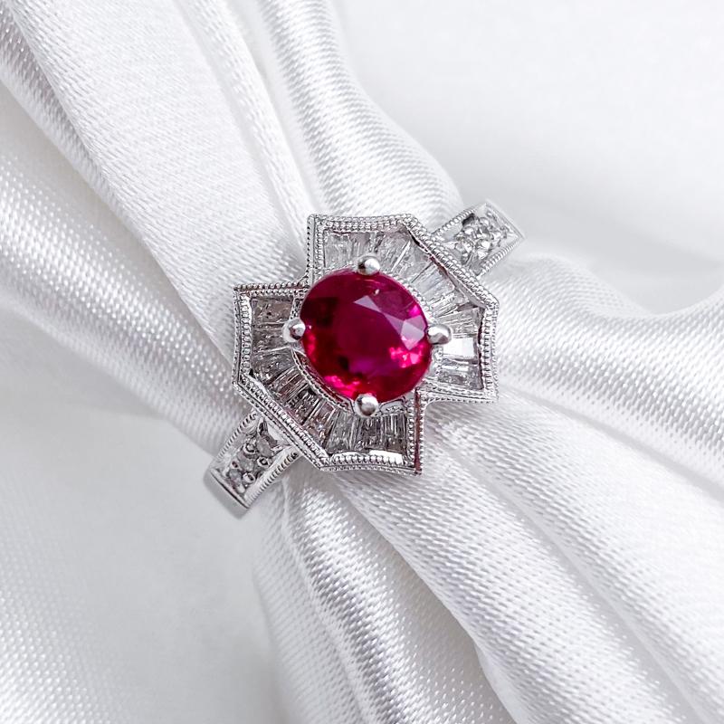 【鑲嵌材質】紅寶石(鴿血紅)、天然鑽石