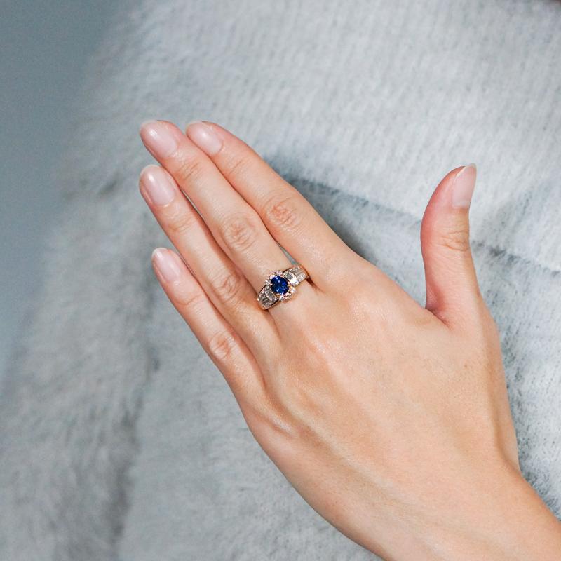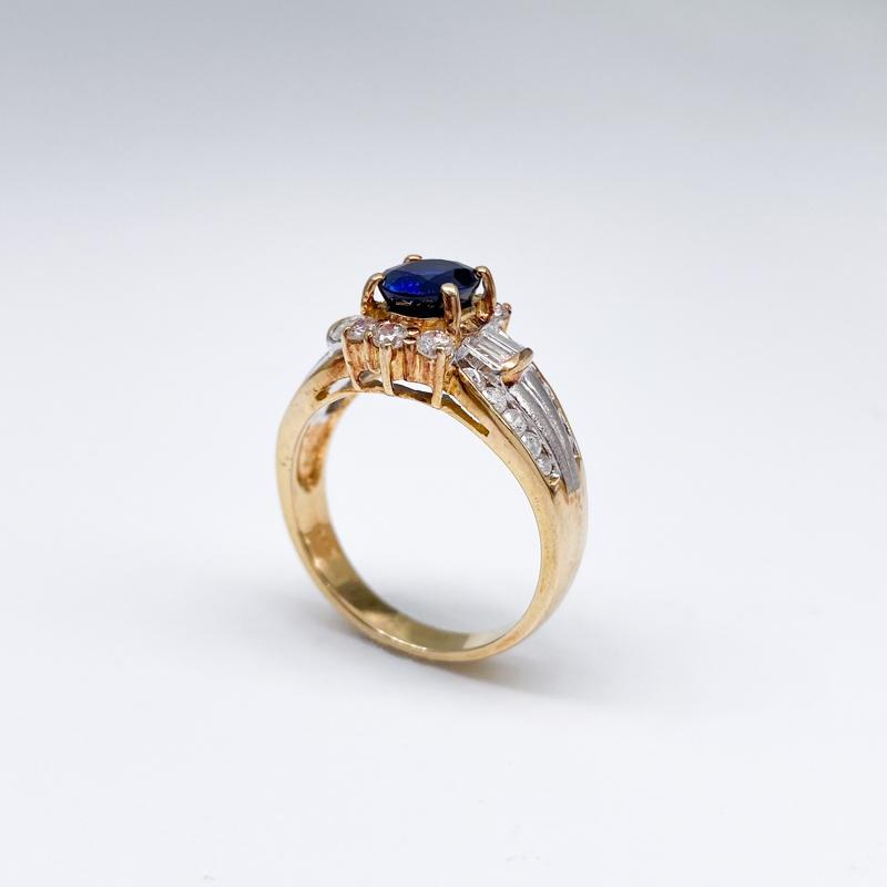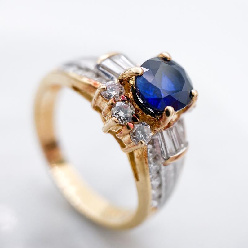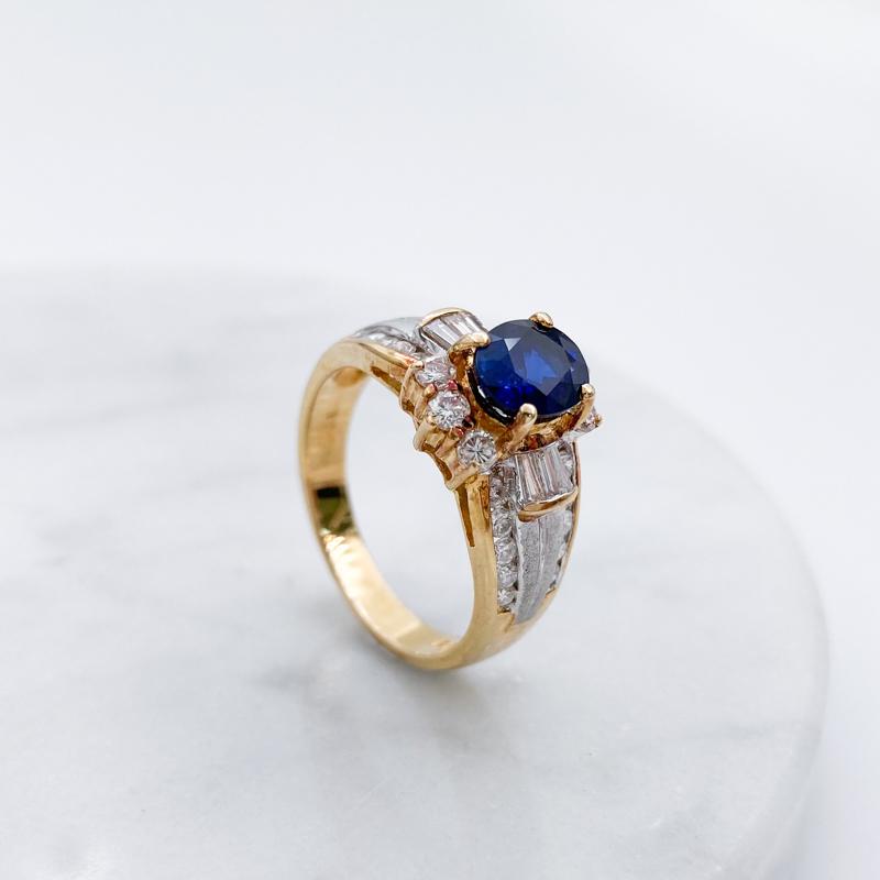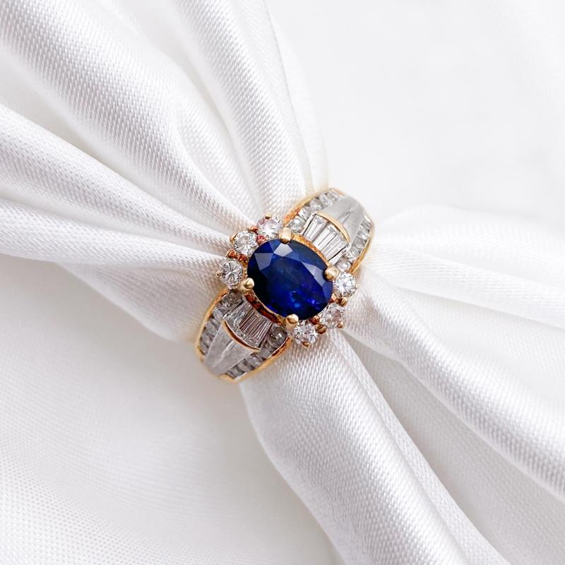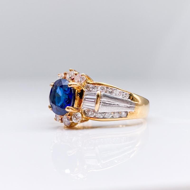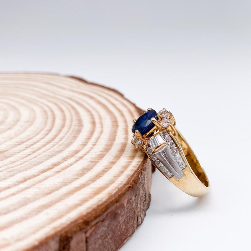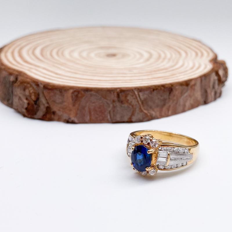 【商品名稱】閃耀藍寶鑲鑽K金戒