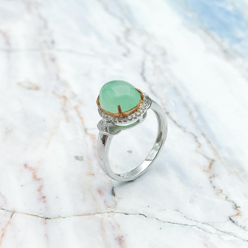 【商品名稱】翡翠雙色造型K金戒