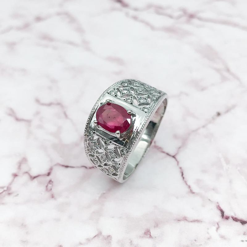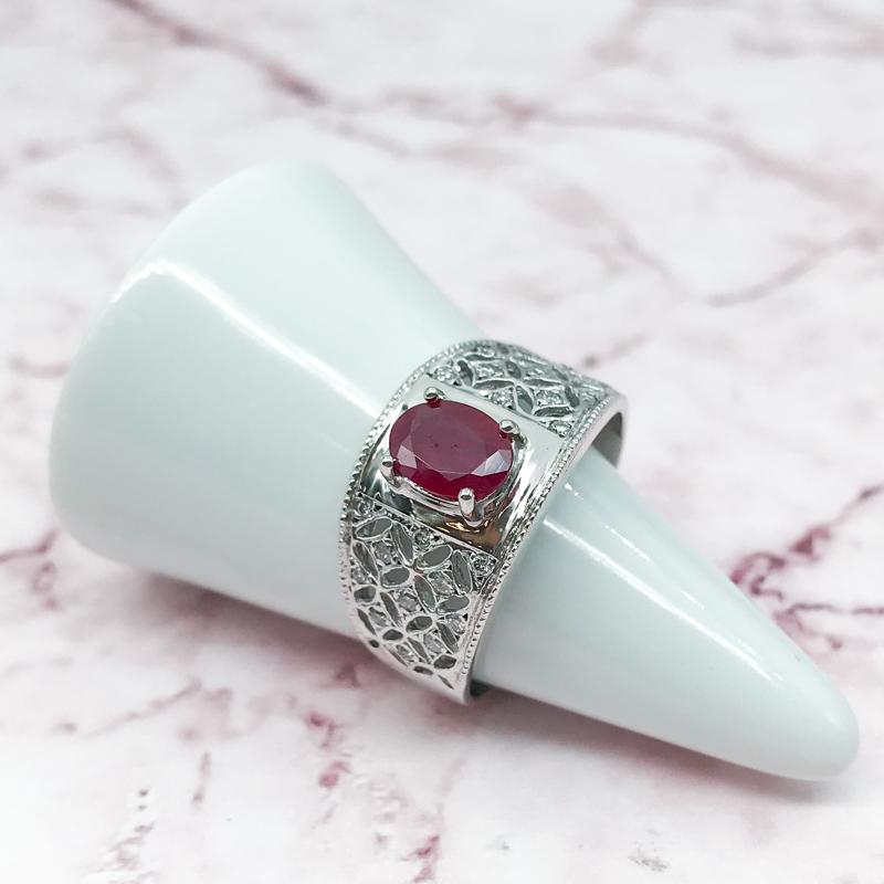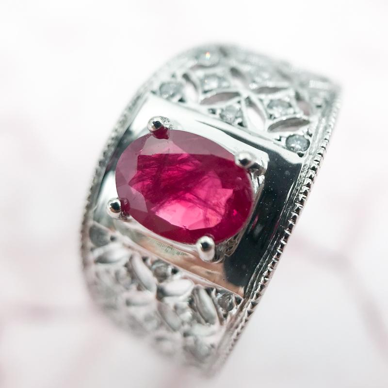 首頁 K金 戒指 鑲嵌 紅寶石簍空白K金戒
