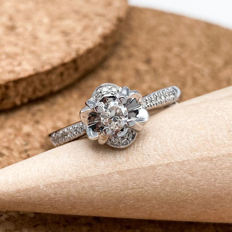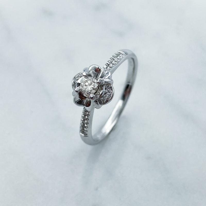 【商品名稱】小花圓鑽K金戒