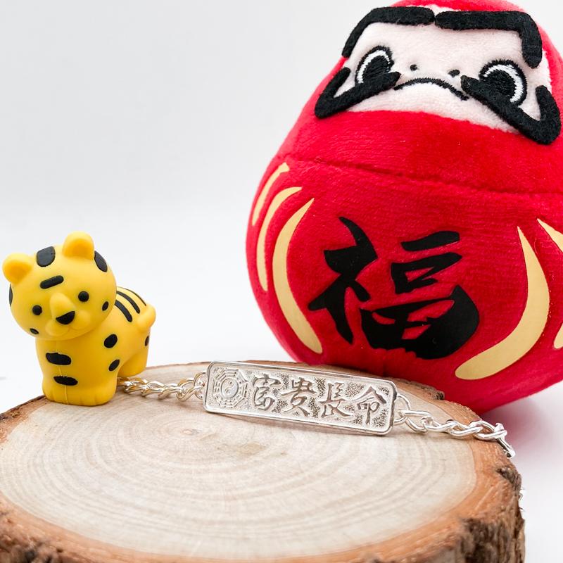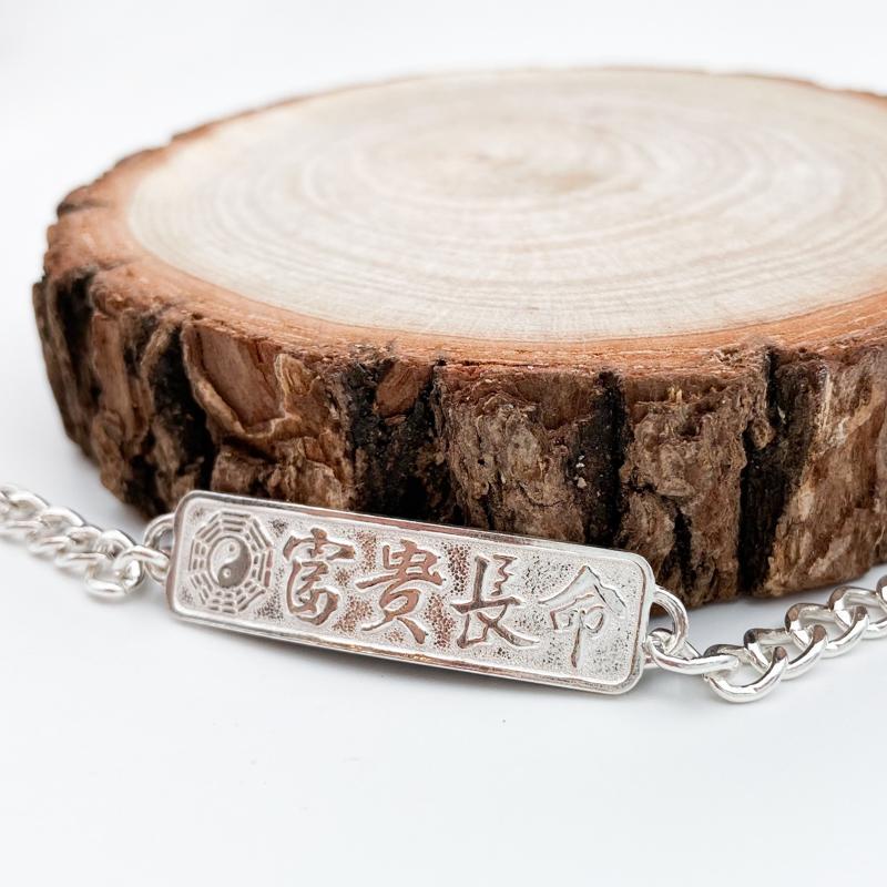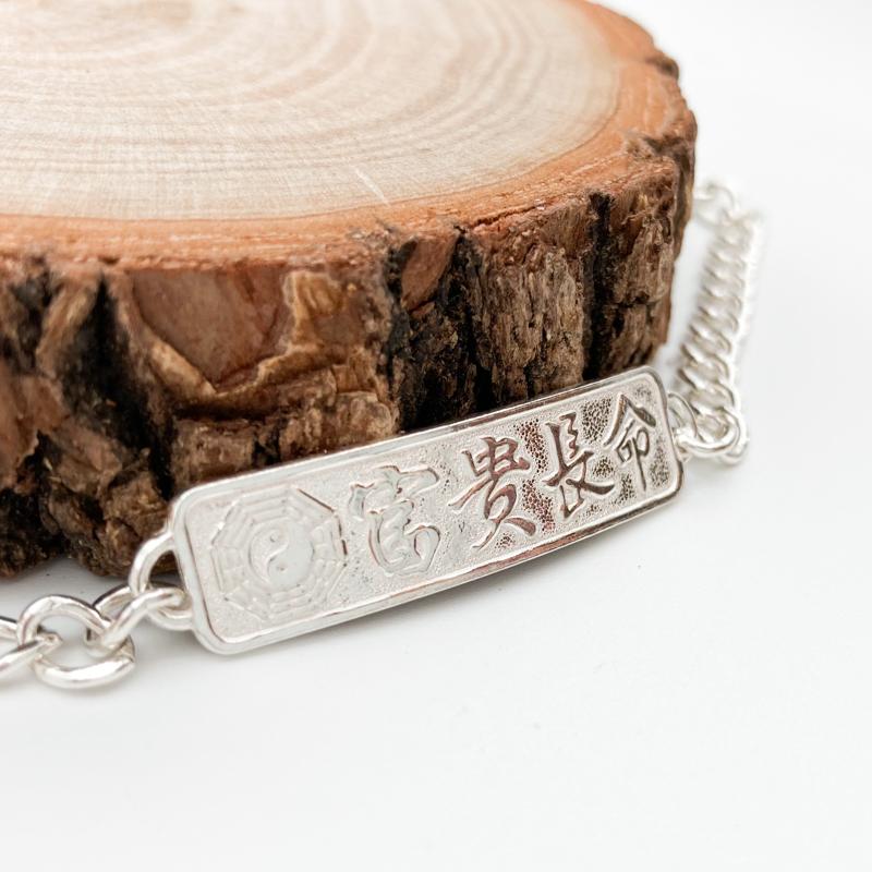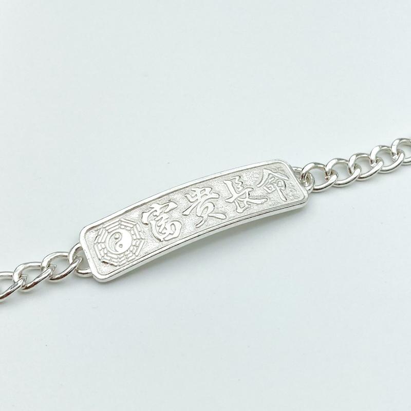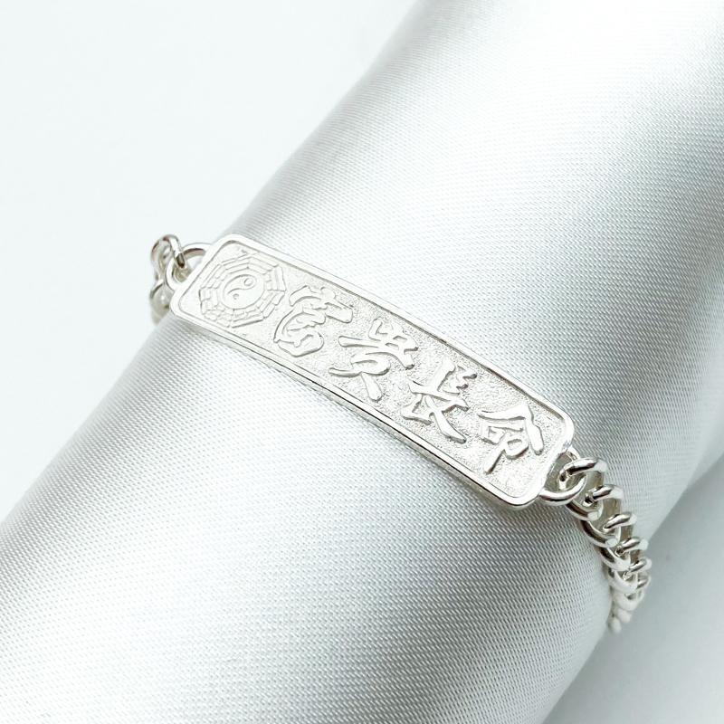 【商品名稱】富貴長命方牌純銀兒童手鍊(一對)