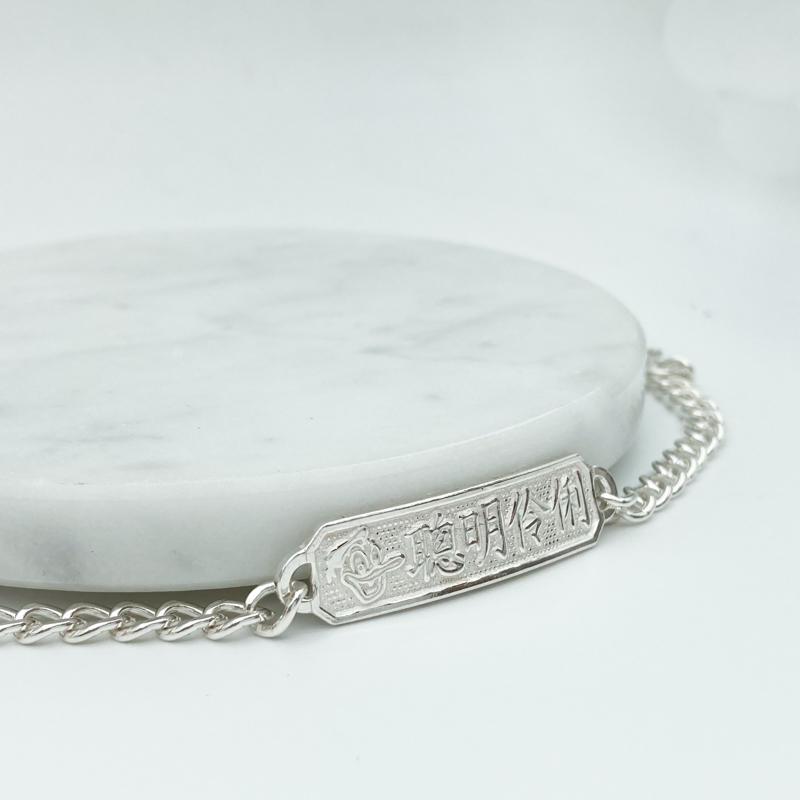 【商品名稱】聰明伶俐方牌純銀兒童手鍊