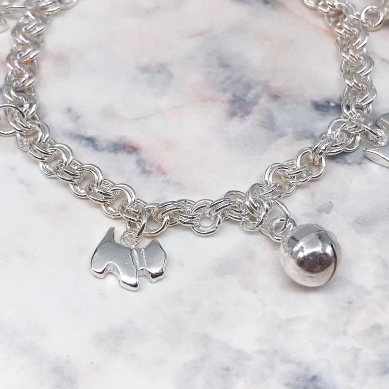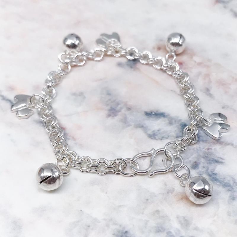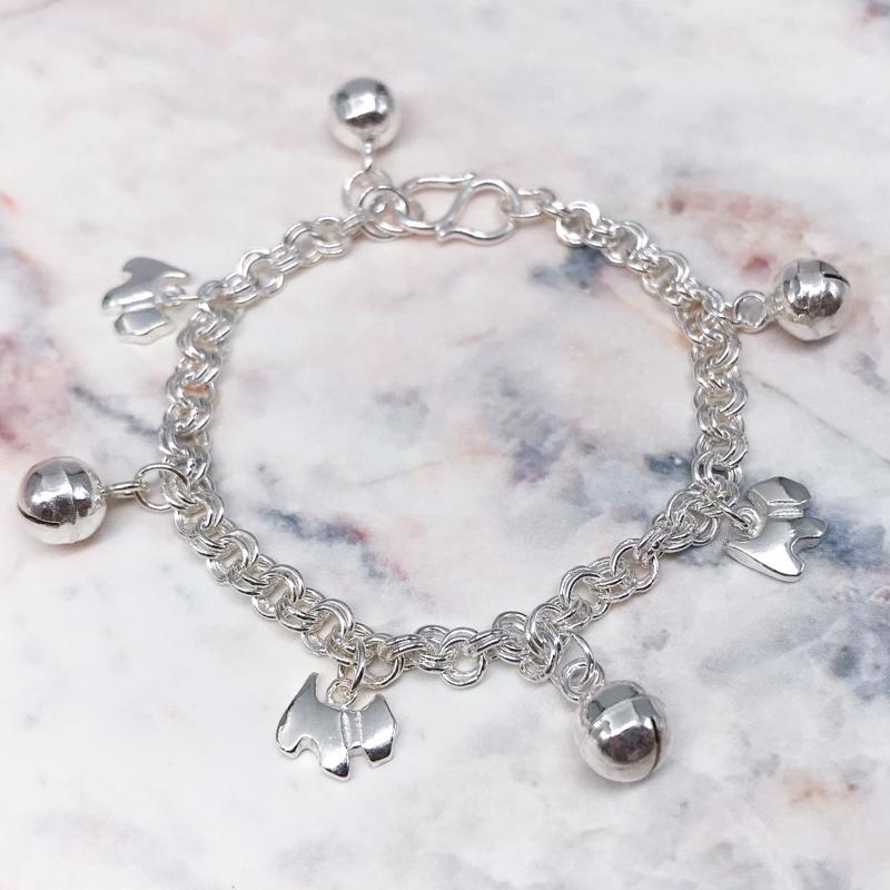 首頁 手鍊/手環 純銀 狗狗鈴鐺多墜純銀兒童手鍊(一對)